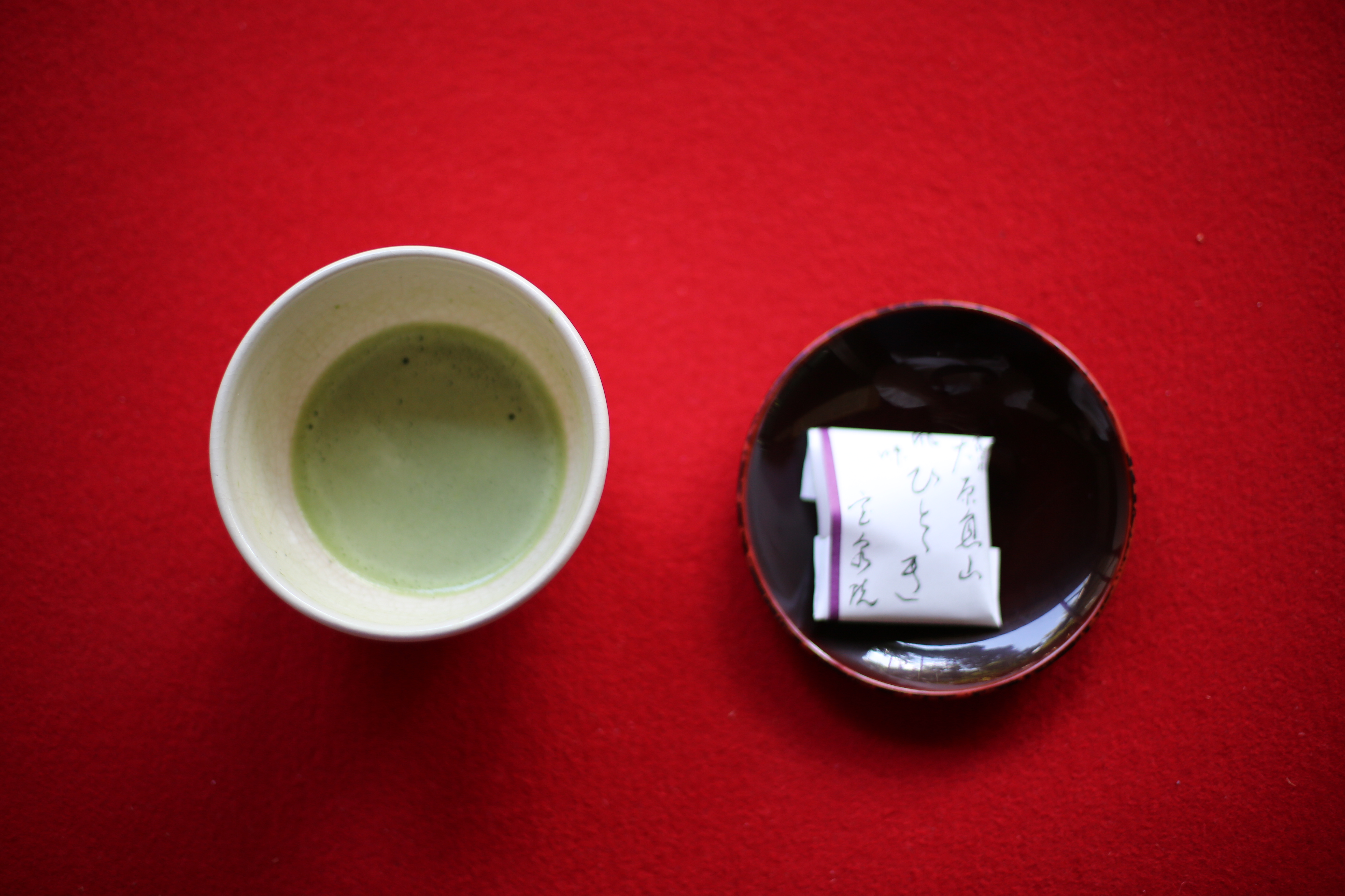 fa-caret-rightお抹茶、オリジナルのお菓子(若狭屋手作りの和菓子)でお寛ぎください。